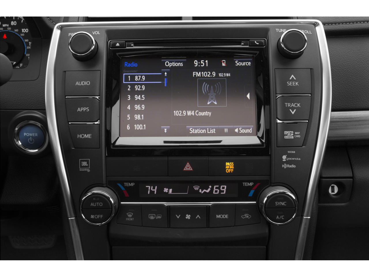 - Radio: Entune Audio Plus -inc: Entune multimedia bundle, 6.1" touch-screen display, AM/FM CD player, MP3/WMA playback capability, 6 speakers, auxiliary audio jack, USB 2.0 port w/iPod connectivity and control, advanced voice recognition, hands-free phone capability, phone book access and music streaming via Bluetooth® wireless technology, SiriusXM radio w/90-day complimentary trial, HD Radio and HD traffic and weather in major metro areas