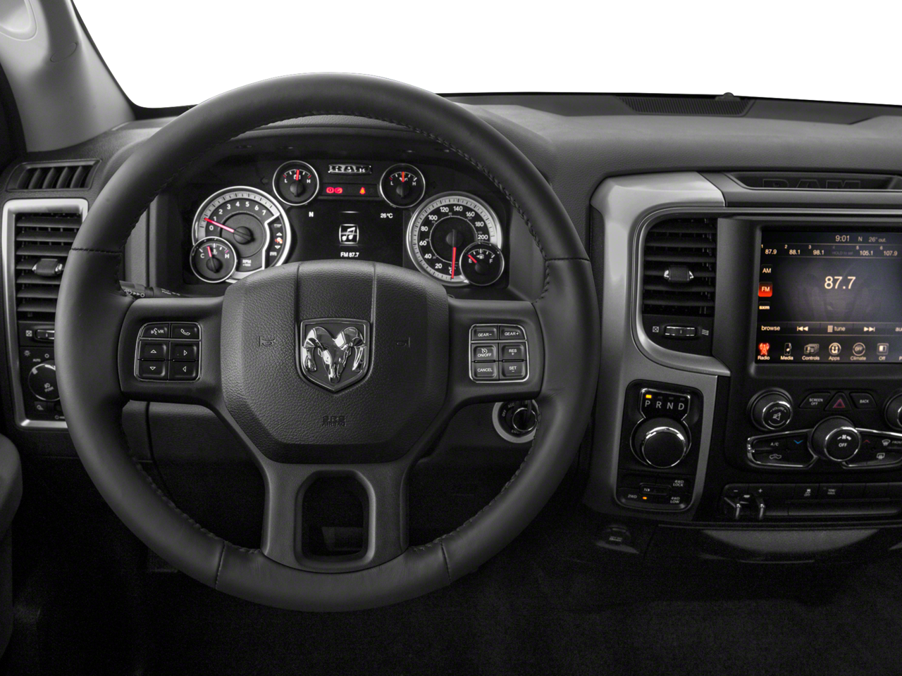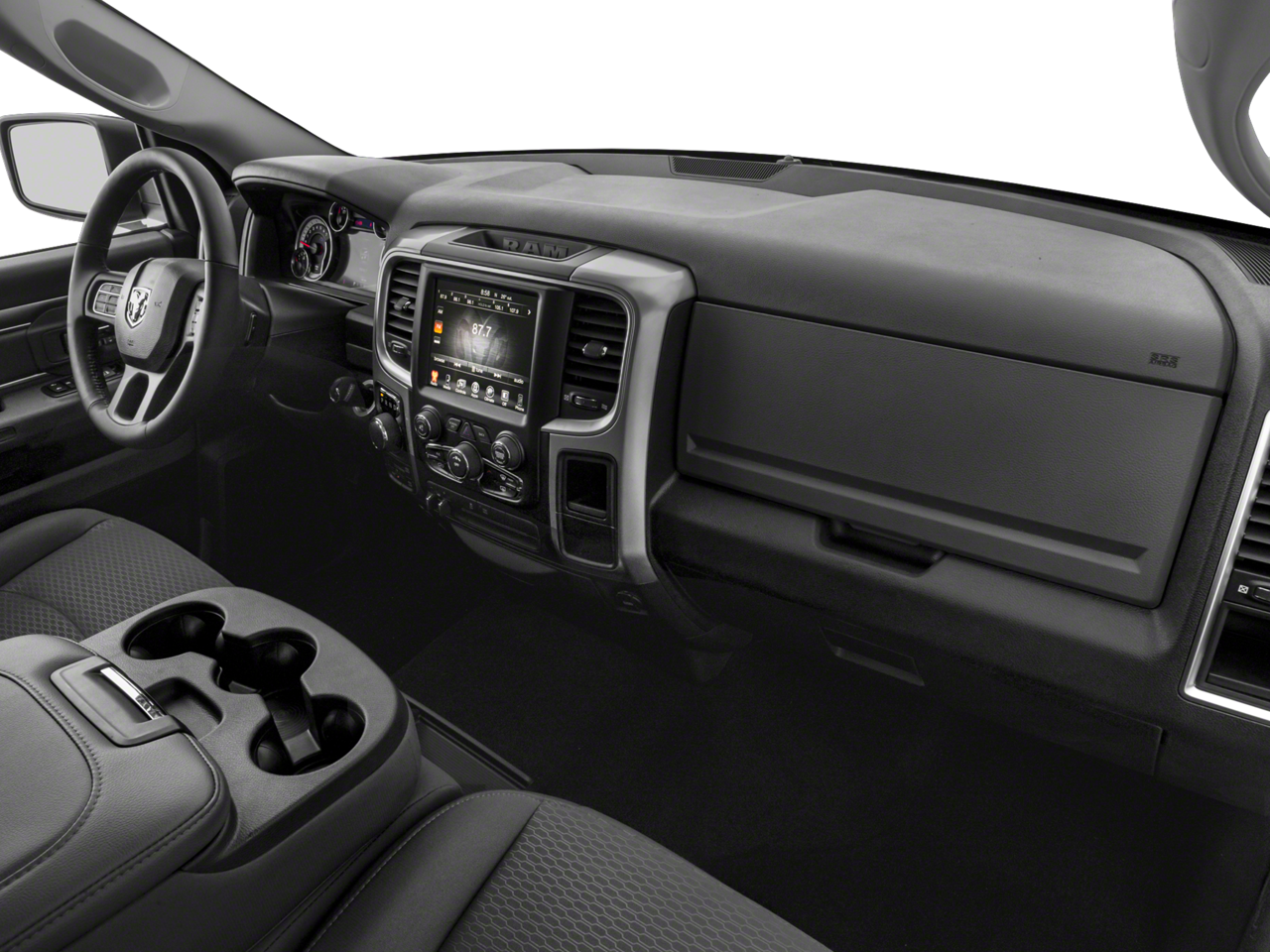 QUICK ORDER PACKAGE 26S BIG HORN Engine: 5.7L V8 HEMI MDS VVT, Transmission: 8-Speed Automatic (8HP70), Rear View Auto Dim Mirror, Leather Wrapped Steering Wheel, Rear Dome w/On/Off Switch Lamp, Underhood Lamp, LED Bed Lighting, Glove Box Lamp, Bright/Bright Billets Grille, Auto Dim Exterior Mirrors, Big Horn Regional Package, Big Horn Badge, Security Alarm, Power Heated Fold-Away Mirrors, Electroluminescent Instrument Cluster, Overhead Console w/Garage Door Opener, Universal Garage Door Opener, Remote Start System, Full Size Temporary Use Spare Tire, SIRIUSXM Satellite Radio, No satellite coverage in Hawaii or Alaska, (Reg, Required), For Details Visit DriveUconnect.com, Uconnect Access, (Registration Required), 8.4 Touchscreen Display, Nav-Capable! See Dealer, ENGINE: 5.7L V8 HEMI MDS VVT: Electronically Controlled Throttle, Heavy Duty Engine Cooling, Next Generation Engine Controller, Engine Oil Heat Exchanger, Hemi Badge, Heavy Duty Transmission Oil Cooler, RADIO: UCONNECT 3C NAV W/8.4 DISPLAY: SIRIUSXM Satellite Radio, No satellite coverage in Hawaii or Alaska, Uconnect Access, HD Radio, For Details Visit DriveUconnect.com, (Registration Required), GPS Navigation, SiriusXM Travel Link, SIRIUSXM Traffic, 1 Year Sirius Real Time Traffic Service, Uconnect Access, 8.4 Touchscreen Display, WHEEL TO WHEEL SIDE STEPS, HEATED SEATS & WHEEL GROUP: Heated Steering Wheel, Heated Front Seats, TRANSMISSION: 8-SPEED AUTO (8HP70), SPRAY IN BEDLINER, 9 ALPINE SPEAKERS W/SUBWOOFER, DIESEL GRAY/BLACK, PREMIUM CLOTH BUCKET SEATS Power Lumbar Adjust, 115V Auxiliary Power Outlet, Bucket Seats, Rear 60/40 Split Folding Seat, Folding Flat Load Floor Storage, Power 10-Way Driver Seat, Full Length Upgraded Floor Console.