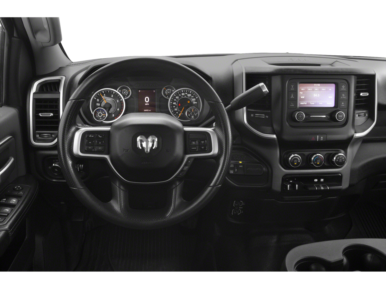 ENGINE: 6.7L I6 CUMMINS TURBO DIESEL: Selective Catalytic Reduction (Urea), Dual 730 Amp Maintenance Free Batteries, Cummins Turbo Diesel Badge, Heavy Duty Engine Cooling, Tow Hooks, Diesel Exhaust Brake, Supplemental Heater, Front Bumper Sight Shields, Capless Fuel Fill w/o Discriminator, LEVEL 1 EQUIPMENT GROUP: Radio: Uconnect 4 w/8.4 Display, Google Android Auto®, SiriusXM Satellite Radio, Integrated Center Stack Radio, 8.4 Touchscreen Display, Apple CarPlay®, Locking Lower Glove Box, Rear View Auto Dim Mirror, Power Adjustable Pedals, Leather Wrapped Steering Wheel, Rear Dome w/On/Off Switch Lamp, Front Fog Lamps, Power Adjust/Fold & Heated Black Tow Mirrors, Steering Wheel Mounted Audio Controls, Dual Glove Boxes, Glove Box Lamp, Footwell Courtesy Lamp, Universal Garage Door Opener, Cluster 3.5 TFT Color Display, Power Folding Mirrors, Foam Bottle Insert (Door Trim Panel), Wheels: 18 x 8.0 Polished Aluminum, 2nd Row In Floor Storage Bins, Sun Visors w/Illuminated Vanity Mirrors, Big Horn IP Badge, CHROME FLAT WHEEL-TO-WHEEL SIDE STEPS, BLIND SPOT & CROSS PATH DETECTION: Power Folding Mirrors, Power Adjust/Fold & Heated Black Tow Mirrors, LED Tail Lamps, MOPAR SPRAY IN BEDLINER, 9 ALPINE SPEAKERS W/SUBWOOFER, ANTI-SPIN DIFFERENTIAL REAR AXLE, PARKSENSE FRONT/REAR PARK ASSIST SYSTEM, BLACK, PREMIUM CLOTH BUCKET SEATS: Bucket Seats, Manual Adjust 4-Way Front Passenger Seat, Power Adjust 8-Way Driver Seat, Folding Flat Load Floor Storage, Rear 60/40 Folding Seat, Front Seat Back Map Pockets, Power 2-Way Driver Lumbar Adjust, Full Length Upgraded Floor Console, TRANSMISSION: 6-SPEED AUTOMATIC (68RFE): Chrome Accent Shift Control.