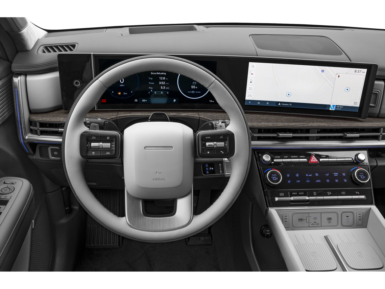 - Radio: AM/FM/HD Bose Premium Audio System -inc: 12 speakers including subwoofer, external amplifier, 12.3" wide touchscreen, Apple CarPlay and Android Auto, Bluetooth® hands-free w/wireless audio streaming, dynamic voice recognition, USB connectivity, SiriusXM, Blue Link connected car system, navigation system including traffic flow w/incident data via HD Radio (HERE) and rear seat quiet mode