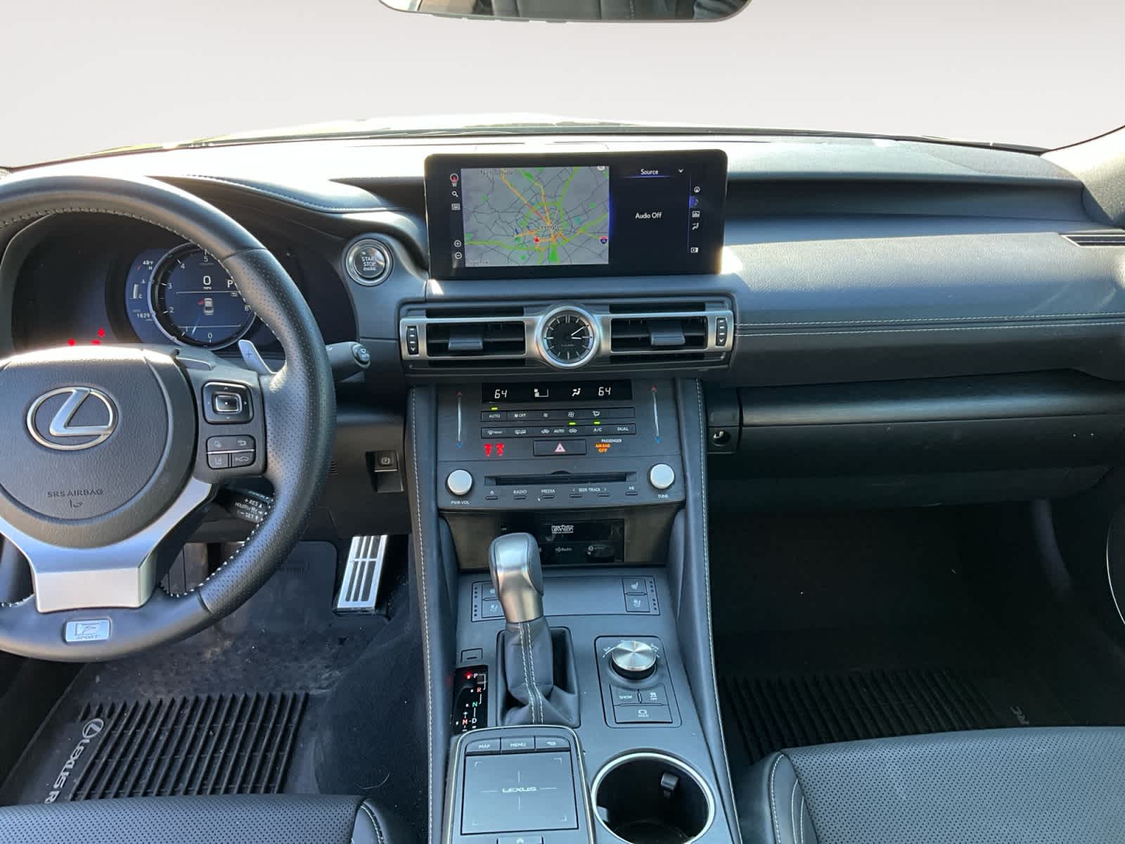 NAVIGATION SYSTEM W/MARK LEVINSON AUDIO PACKAGE 10.3 color multimedia display, dynamic navigation (complimentary for 3 years of ownership), dynamic voice recognition, enhanced voice command, remote touchpad, HD Radio w/iTunes tagging (complimentary traffic and weather), Lexus Enform Destination Assist, Included for the first 3 years of ownership, Mark Levinson Premium Surround System w/DVD, 17 speakers including subwoofer, 835-watt Class D amplifier, Clari-Fi audio processing, 7.1-channel surround sound and machined-aluminum control knobs, Lexus Enform Enform App Suite 2.0, Yelp, iHeartRadio, Pandora, Slacker, NPR One and Amazon Alexa, Complimentary for up to the first 3-years of ownership, TRIPLE-BEAM LED HEADLAMPS, MOONROOF W/POWER TILT/SLIDE, FRONT & REAR INTUITIVE PARKING ASSIST: clearance and back sonar, F SPORT HEATED STEERING WHEEL W/PADDLE SHIFTERS, F SPORT PACKAGE: F SPORT front fascia, grille and exterior badging, unique front bumper and rear valance, dark gray streamline trim, drive mode select (Eco, Normal, Sport S, Sport S+, Snow and Custom), Vehicle Dynamics Integrated Management (VDIM) w/sport mode and active sound control.