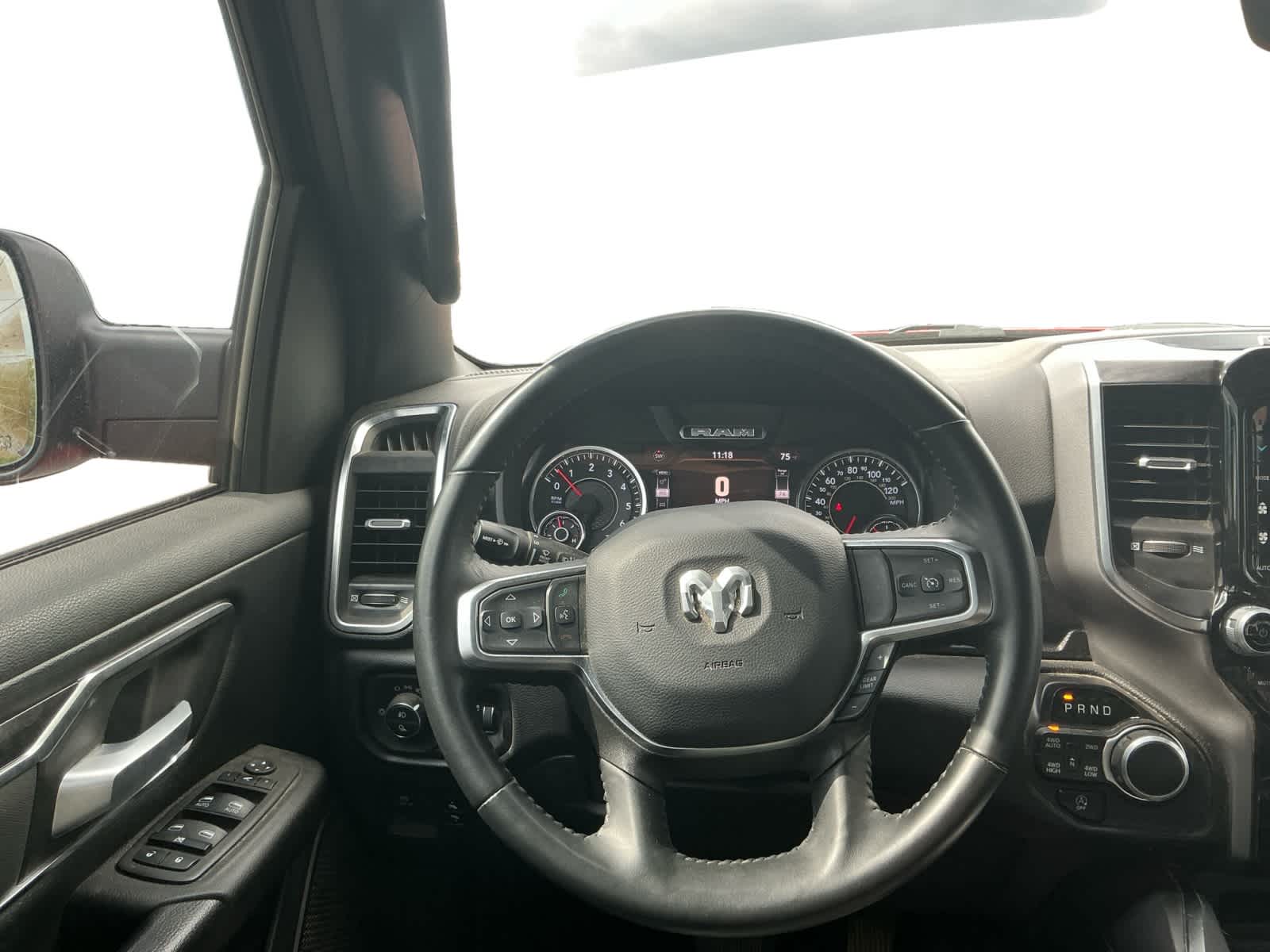 BIG HORN LEVEL B EQUIPMENT GROUP Rear Window Defroster, ParkSense Front/Rear Park Assist w/Stop, Rear View Auto Dim Mirror, Power Adjustable Pedals, Rear Power Sliding Window, Rear Dome w/On/Off Switch Lamp, Front Fog Lamps, Glove Box Lamp, Media Hub w/2 Charge Only USBs, Power 8-Way Driver Seat, Auto Dim Exterior Driver Mirror, Heated Front Seats, Heated Steering Wheel, Class IV Receiver Hitch, Security Alarm, Black Premium Power Mirrors, Big Horn IP Badge, Remote Start System, SiriusXM Satellite Radio, 400W Inverter, 9 Amplified Speakers w/Subwoofer, Radio: Uconnect 5 Nav w/12.0 Display, Google Android Auto®, SiriusXM Radio Service, USB Host Flip, HD Radio, For More Info, Call 800-643-2112, Connectivity - US/Canada, GPS Navigation, 4G LTE Wi-Fi Hot Spot, SiriusXM w/360L, All Radio, ENGINE: 5.7L V8 HEMI MDS VVT ETORQUE Active Noise Control System, Heavy Duty Engine Cooling, Passive Tuned Mass Damper, Dual Rear Exhaust w/Bright Tips, HEMI Badge, 23 Gallon Fuel Tank, 18 Aluminum Spare Wheel, NIGHT EDITION Tires: 275/55R20 OWL All Season, Accent Color Premium Power Mirrors, Exterior Mirrors w/Supplemental Signals, Black Headlamp Bezels, Exterior Mirrors Courtesy Lamps, Auto Dim Exterior Driver Mirror, Black Exterior Truck Badging, Anti-Spin Differential Rear Axle, Wheels: 20 x 9.0 Premium Paint/Polished, Accent Color Door Handles, Grille Surround 1 Black Texture 2 Black, Black Interior Accents, Dual Exhaust w/Black Tips, Power-Folding Mirrors, Body Color Front Bumper, Body Color Rear Bumper w/Step Pads, RAM Grille Badge - Black, Black Painted Exterior Mirrors Caps, TRANSMISSION: 8-SPEED AUTOMATIC (8HP75), BLACK, DELUXE CLOTH BUCKET SEATS Power 8-Way Driver Seat, Bucket Seats, Manual Adjust 4-Way Front Passenger Seat, Full Length Floor Console, Rear Center Armrest, Power 2-Way Driver Lumbar Adjust.