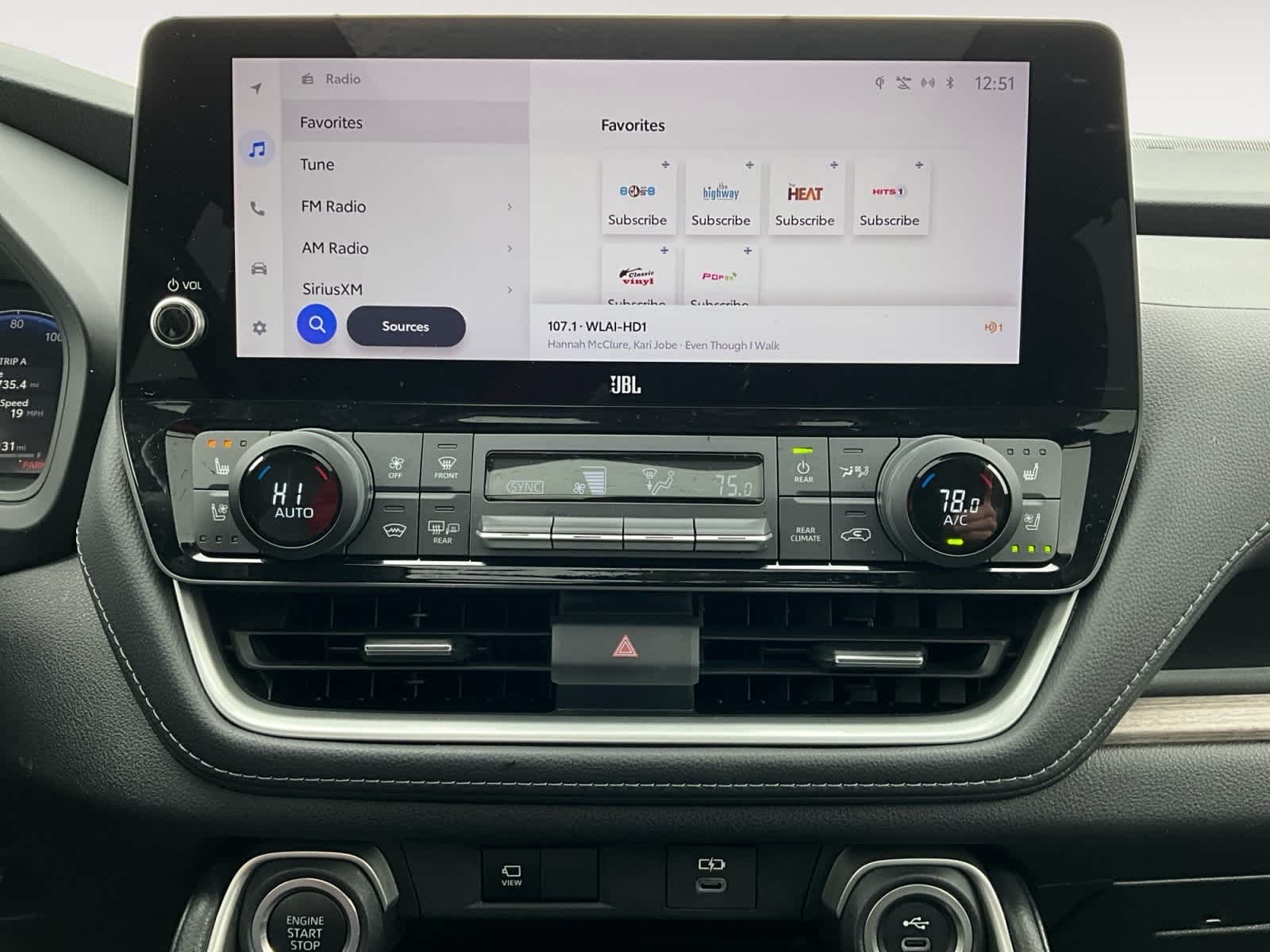 - Radio: 12.3" Toyota Audio Multimedia w/JBL Premium -inc: 11 speakers, voice activated commands, dual Bluetooth® phone connectivity, wireless Apple CarPlay and Android Auto compatibility, HD Radio, USB and SiriusXM w/3-month platinum plan trial subscription