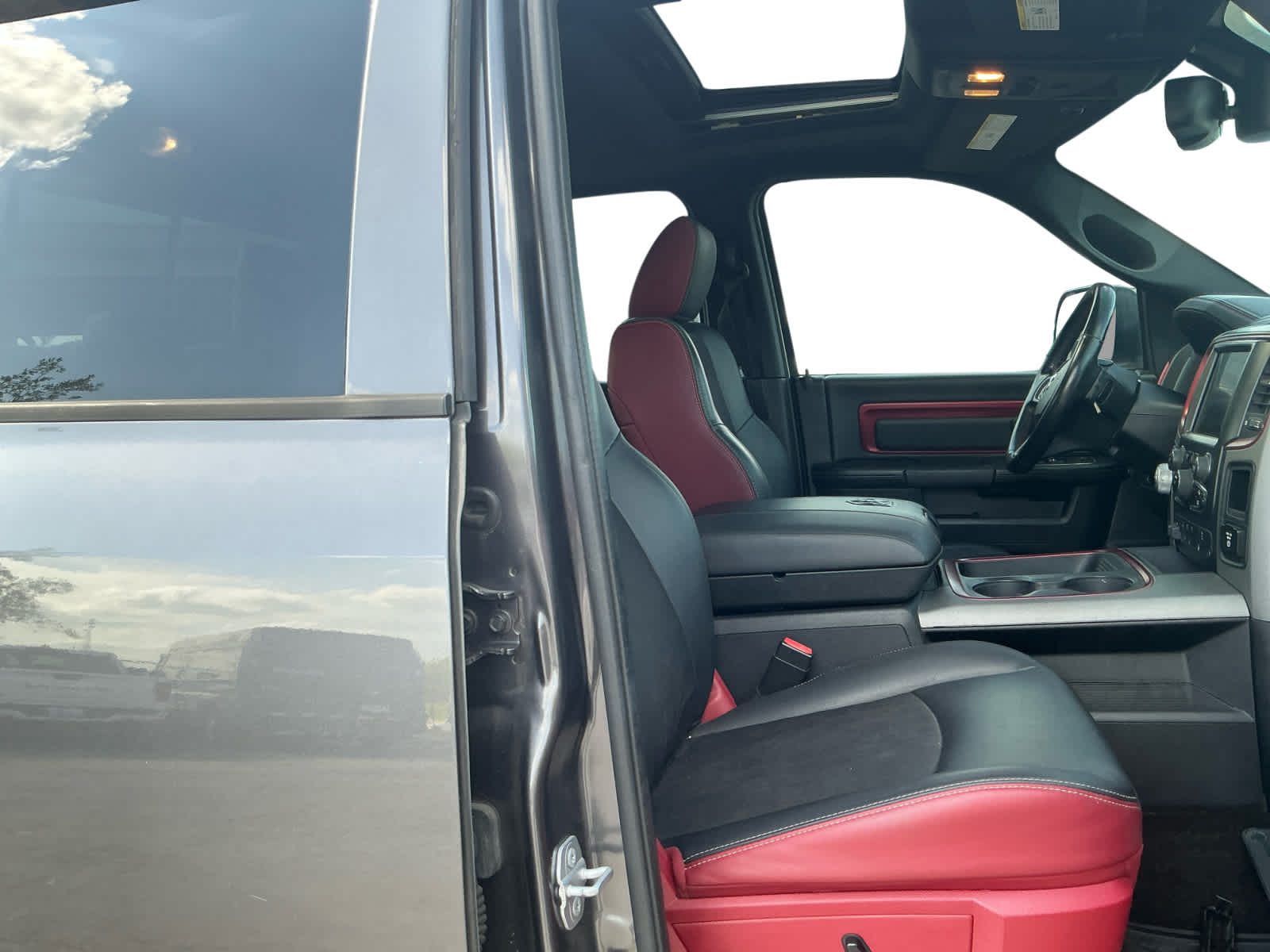 ENGINE: 5.7L V8 HEMI MDS VVT Next Generation Engine Controller, Hemi Badge, Heavy Duty Transmission Oil Cooler, Electronically Controlled Throttle, Heavy Duty Engine Cooling, RADIO: UCONNECT 8.4 NAV Uconnect Access, HD Radio, Media Hub (SD, USB, AUX), For Details Visit DriveUconnect.com, (Registration Required), GPS Navigation, SiriusXM Travel Link, Remote SD Card Slot, SIRIUSXM Traffic, 1 Year Sirius Real Time Traffic Service, Uconnect Access, 8.4 Touchscreen Display, POWER SUNROOF, LUXURY GROUP Exterior Mirrors w/Supplemental Signals, Rear Dome w/On/Off Switch Lamp, Underhood Lamp, LED Bed Lighting, Exterior Mirrors Courtesy Lamps, Glove Box Lamp, Rear View Auto Dim Mirror w/Microphone, Auto Dim Exterior Mirrors, Power Folding Mirrors, Power Heated Fold-Away Mirrors, Sun Visors w/Illuminated Vanity Mirrors, Overhead Console w/Garage Door Opener, Universal Garage Door Opener, REAR CAMERA & PARK ASSIST GROUP ParkSense Rear Park Assist System, ParkView Rear Back-Up Camera, Rear View Auto Dim Mirror w/Display, TRANSMISSION: 8-SPEED AUTOMATIC (8HP70), SPRAY IN BEDLINER, REMOTE START & SECURITY ALARM GROUP Remote Start System, Security Alarm, ANTI-SPIN DIFFERENTIAL REAR AXLE, 9 ALPINE SPEAKERS W/SUBWOOFER, Keyless GO® Remote Proximity Keyless Entry, SINGLE DISC REMOTE CD PLAYER.